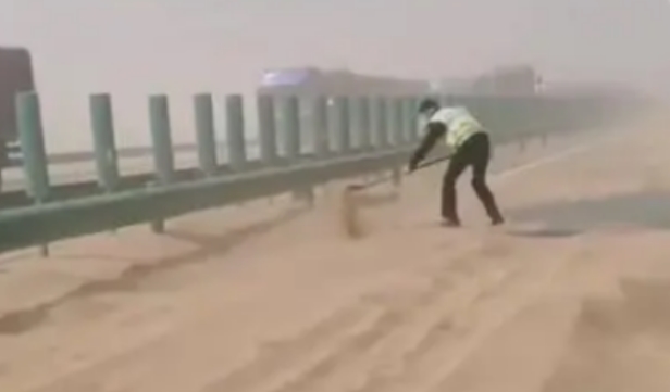 高速公路被黄沙淹没交警铲沙开路 为何今年北方地区沙尘暴如此繁复?