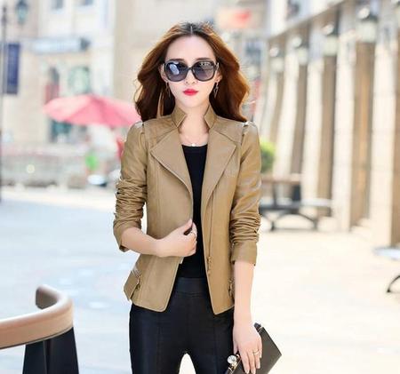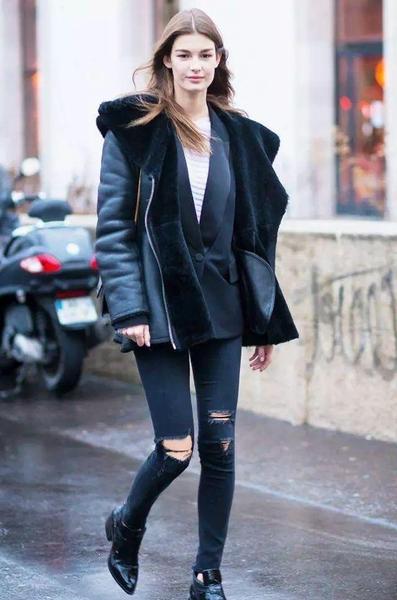 除了风衣,根据小版的上衣还可以搭配一件简洁的皮衣,黑色的小版上衣,搭配一件深卡其色的薄皮衣也是超级完美的,个性干练,时尚大方的特性也是体现的淋漓尽致!