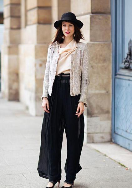 随性的小版上衣,也可以搭配一件轻松纱锻的阔腿裤,突出A字形的身体,风韵犹满,干净清爽,搭配一件粗麻的针织布外套,倒是恰恰满足了,女性的韵味!