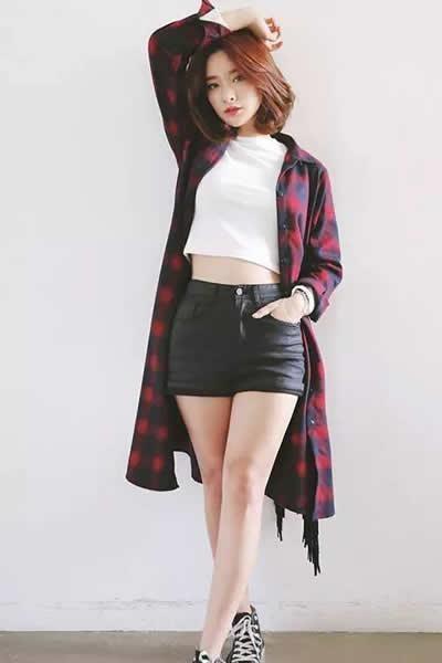 露脐的小版上衣,配合低腰的细脚牛仔裤,还是配一件短裤,根据小版上衣的质地,颜色和裤子先完美的配合好后,相应的搭配一件长款衬衫,亦或纯色轻薄的涤纶衬衫亦或大方的格子棉麻衬衫,都是个性满满的搭配,切记的是衬衣要过膝盖3公分左右,不宜过短也不宜太长!
