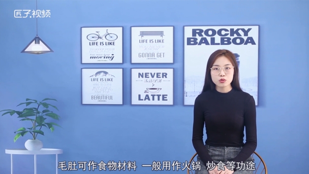 牛百叶即牛胃,别名百叶、肚尖、牛胃。毛肚,是牛的内脏之一,即牛只胃部中的第三个间隔瓣胃,瓣胃成叶片状,功用是吸收水份及发酵产生的酸。毛肚可以作食物材料,一般用作火锅、炒食等用途,广东人饮茶时也会把它蒸熟当点心。新鲜的毛肚必须经过处理才会爽脆可口,具有补益脾胃、补气养血、补虚益精、消渴、风眩之功效,适宜于病后虚羸、气血不足、营养不良、脾胃薄弱之人。