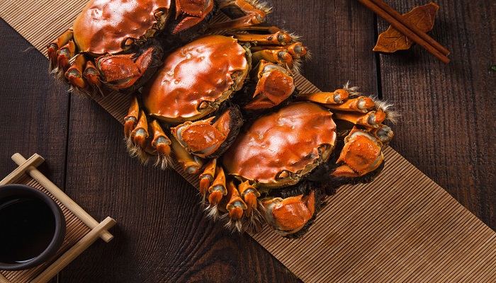 大闸蟹又称河蟹、毛蟹、清水蟹、中华绒螯蟹,是一种经济蟹类,为中国久负盛名的美食。其螯足用于取食和抗敌,掌部内外缘密生绒毛,绒螯蟹因此而得名。杂食性动物,鱼、虾、螺、蚌、蠕虫、蚯蚓、昆虫及其幼虫等均可作为大闸蟹的动物性饵料。