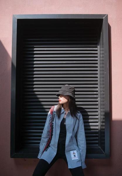 [比心]3. 帽子:帽檐往下拽,只露鼻子和嘴的部分,这时嘴是唯一传达画面氛围的重要元素,不是装酷就是大笑,一定很出效果。