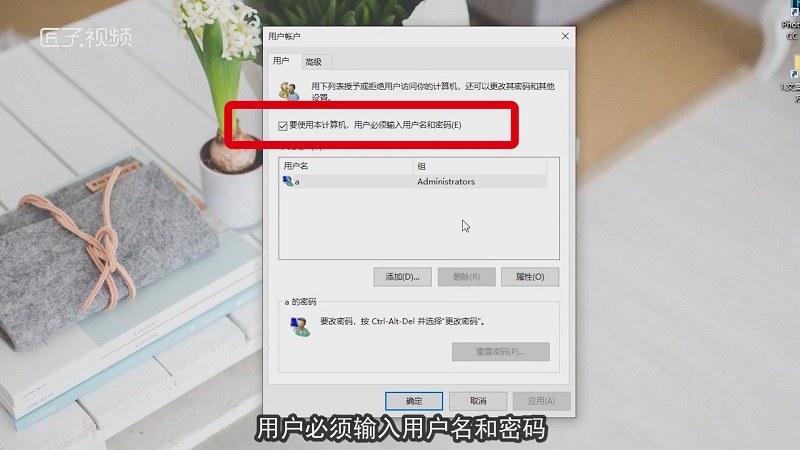 2、在这个用户帐户管理面板中有一个选项【要使用计算机,用户必须输入用户名和密码】,它的状态默认是打勾选中的。我们需要做的就是去掉这个勾,然后点确定。