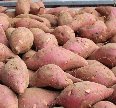 红薯在我们这里叫山药,有白瓤山药红瓤山药,有春山药有晚山药。春山药糖份高适合食用,晚山药第二年做种子,山药有很多品种。春山药最高产量可达一万斤左右,在七八十年代是救命的食物,也是喂猪的好东西。