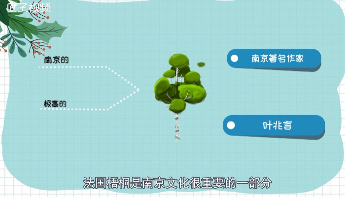 南京的大街小巷里种着许多梧桐树,有着极高的观赏价值。南京著名作家叶兆言曾说过:“法国梧桐是南京文化很重要的一部分。”