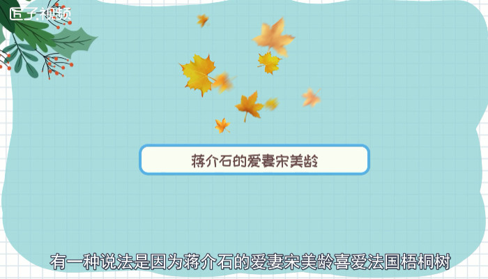 还有一种说法是法国传教士为了表达对孙中山的敬畏,于是在迎接孙中山的奉安大典上,特意申请引进梧桐树作为礼物。最后一种说法是孙中山喜爱梧桐树。在南京建立中华民国时,为了宣扬三民主义纪念孙先生,南京政府特意从法国引进梧桐树。