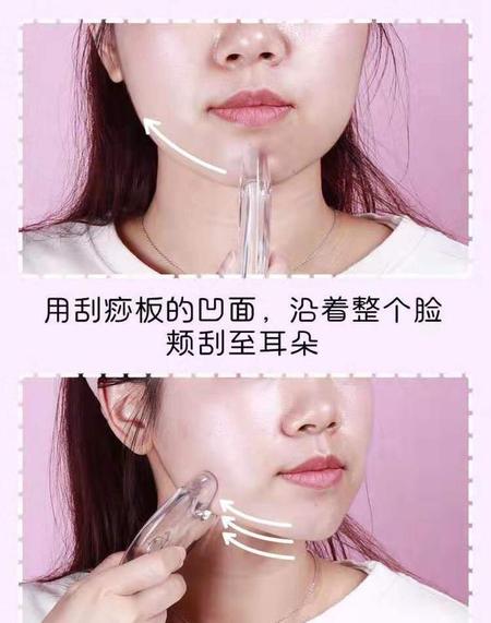 看网上有很多按摩手法,本来想就照着上面的做,还是留了一个心眼先咨询了开美容院的表姐,我软磨硬泡终于从她那学来一套刮脸手法,这套手法在美容院可是价值千元的!在家用10元的刮痧板就能做,我的大圆脸现在都瘦成小v脸了!