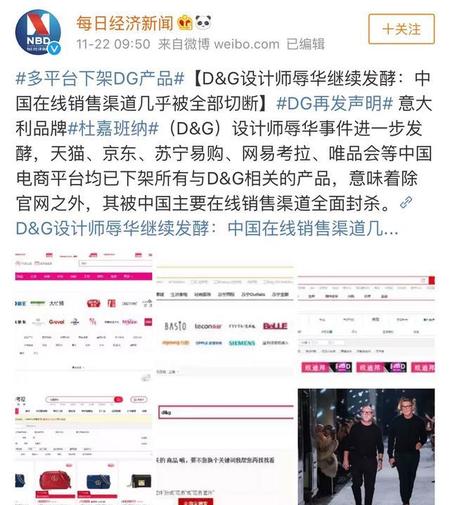 在形象上对D&G造成打击还远远不够,大快人心的是,D&G在中国的在线销售渠道几乎被全部切断,电商平台纷纷下架相关商品。