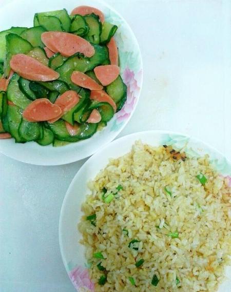 中餐需要能提供各种营养:牛肉、鸡肉、猪排、蔬菜沙拉、米饭等等,给自己搭配一份合理的饮食。