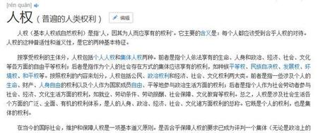 好了,说点和题目相关的吧。“毁灭你,与你何干?”这句小说里经典的台词其实说明了很多问题,也是小说一直以来传递给我们的一个点:生存从来都不是一种权利。当中国还在明清时期的时候,西方国家已经开始倡导人权了,一直到现在我们的观念里都是这样的,我们生而为人,亦拥有人的一切权利。下图是百度给我们的定义: