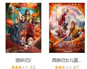 《西游记女儿国》首当其冲,然后就是《捉妖记2》,对照一下豆瓣评分,就觉得合情合理了。