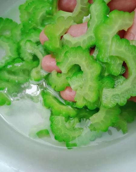 苦瓜在炒的时候需要焯一下水,焯水的作用:能起到护色的作用,也能使苦瓜的苦味减少一些!