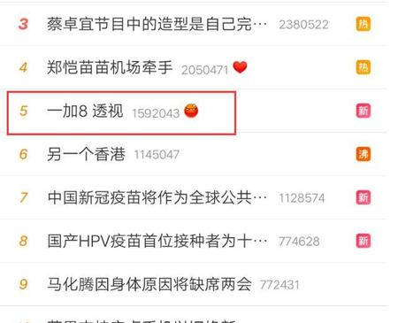 5.18日晚上,一加8 透视话题突然间登上了微博的话题热搜,最高一度窜上微博热搜前五,国产手机的相关话题升到热搜前5,甚至热度比某些明星小鲜肉还要高,这在平时是很难见到的。