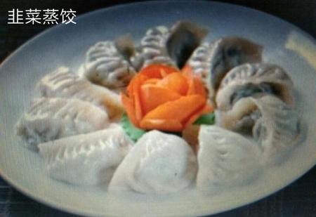 5,很简单做法,美味的韭菜蒸饺就出锅了,再配上香酱料可以吃咯!