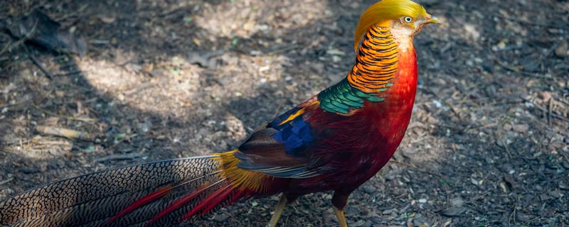 锦鸡由于野生种群数量很少,被列为国家二级保护动物。锦鸡的形状类似喜鹊、大鹦鹉,其背部有纹理呈红黄两种颜色。锦鸡的嘴巴是红色的,头顶端呈绿色,还有红色的肚皮。其脚爪很利害,非常喜欢打斗。