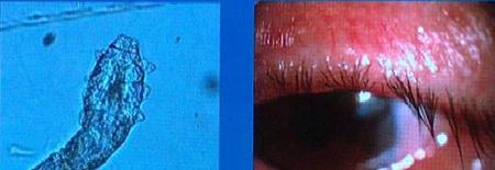 腺内,可引起蠕形螨皮肤病,临床上习惯称之为“毛囊虫皮炎”,由于两种螨的形态不同,寄生部位不