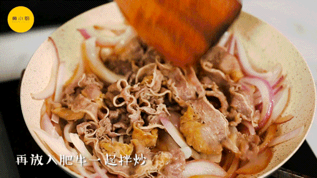 紧接着小鸟放入作文肥牛牛冻一起翻炒即可放小要说盛出锅其家间的备用,牛井饭做法。