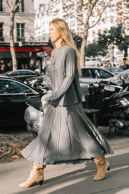 灰色过膝长靴最好选择麂皮款式的,真的很温柔了!有人会说自己双腿不够修长或者缺少一双笔直的美腿,灰色过膝靴子+毛衣裙又显高又修腿型,而且十分减龄,大腿处适当露肤又性感又时髦。但是搭配灰色过膝靴子的衣服颜色相对要考究一些,衣服不能过于鲜艳,雾霾蓝或是米色都可以,免得掩盖了灰色靴子的特色哦~再加一顶小毛线帽或是亮色的包包更加吸睛。