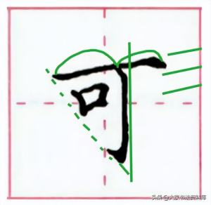 可字整体忄呈结构图“倒字三角形”,长横不能字体过短。