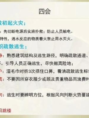 掌握安全疏散线路火灾及引导疏散的四会程序方法;