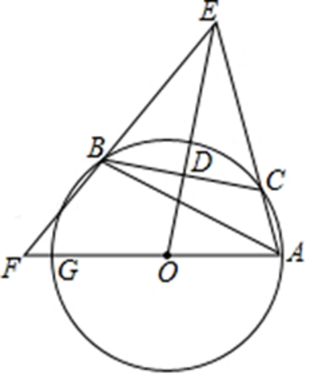 如图,△ABC内接于⊙O,点C在劣弧AB上(不与点A,B重合),点D为弦BC的中点,DE⊥BC,DE与AC的延长线交于点E,射线AO与射线EB交于点F,与⊙O交于点G,设∠GAB=α,∠ACB=β,∠EAG+∠EBA=γ.