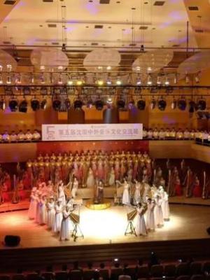 胡雪菲参与演出的泣露“第芙蓉五届沈阳中外音乐文化交流展”,众多箜篌演奏者合奏演出