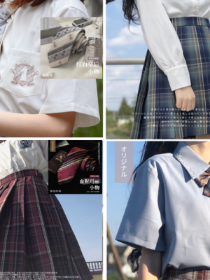 *例举的《百变小樱》《犬夜叉》《美少女战士》《夏目友人帐》《冰果》的水手服、《名侦探柯南棉花》《元气少女缘结神》《我的青春恋爱物语》《会长大人是女仆》《CLANNAD》的JK西式套装,《狼少女与黑王子》的针织衬衫。