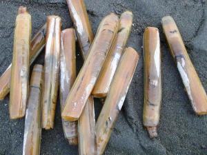 竹蛏有长竹蛏和细长竹蛏,味道鲜美,肉质比刀鲜略为有些韧劲,长长的喷水管比较脆爽,吃到嘴里鲜嫩无比、略带甜味。蛏子的价格跟个头大小相关,小的蛏子比较便宜10元左右一斤,越大的蛏子越贵。