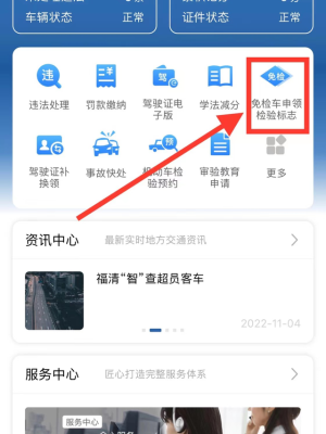 方法一:通过“交管12123”手机APP申领机动车免检年审标志