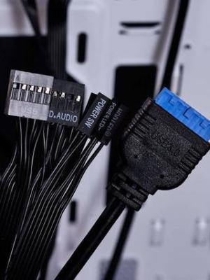 再来看一眼,合理的设计会让机箱内部背得更为简洁,安装也会更为轻松。提醒一下大家,在顶部安装了360冷排的情况下,前置系统部分最大只可安装280冷排(需要拆除硬盘笼)。