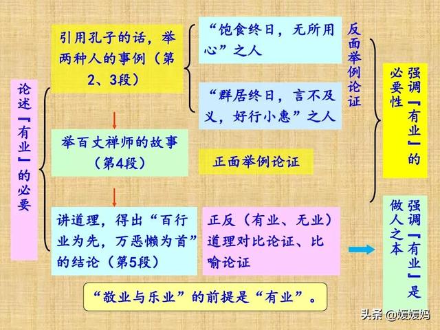 第二部分(②—⑧):依次论述了“有业”“敬业”“乐业”的重要性。