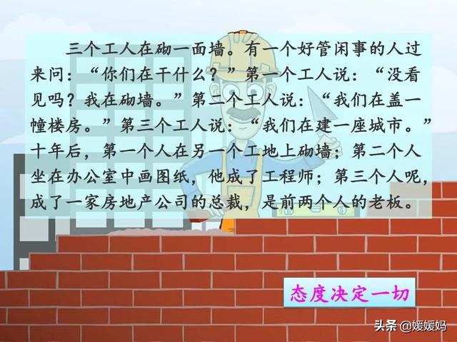 五、示例:事业没有高低贵贱之分,只要有事业可做就好,用意是什么。事业无论大小,专心、忠实去做都有价值。就像梁启超说的一样:“凡职业都是有趣味的,只要你肯继续做下去,趣味自然会发生。”梁启超的话中蕴含着一个哲理,就是在其位,谋其职,每个人就应该做好自己的本职工作,爱岗敬业!