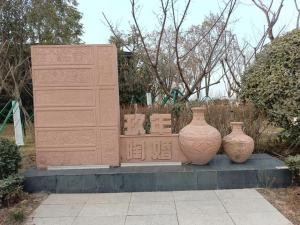 雕塑采用汉代陶器和画像砖为元素,在体现汉代陶器文化的同时,融装饰性、纪念性于一体,寓意婚姻的朴素与真实。