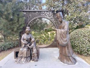 雕塑刻画了四世同堂其乐融融的情景,儿孙满堂,天伦之乐,日子幸福美满。从夫妻之爱到生活之大爱,境界的升华表达了人生的永恒。