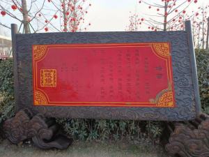 雕塑采用中国传统的青花瓷背景,前景点缀圆雕古装夫妻人物,整体古色古香,富有文化情趣。