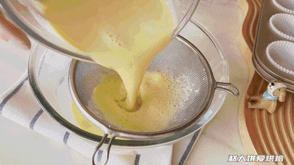 3,一边搅拌蛋黄液,布蕾是什么,一边缓慢倒入蛋糕奶液古茗,不停搅拌均匀