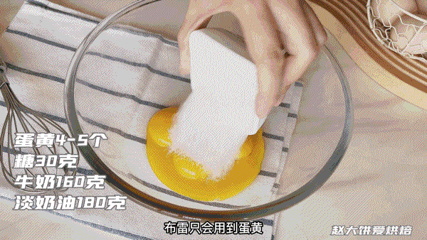 布蕾只用到蛋黄,没有芝士蛋清,因为蛋黄中存在卵磷脂,所以口感就更滑嫩很多。还有布丁需要冷藏凝固,布蕾除了基础加热搅拌均匀以外,还要放入烤箱烤制。