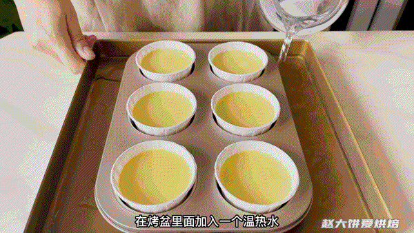 5,用水浴法,烤盘加入温热水芙