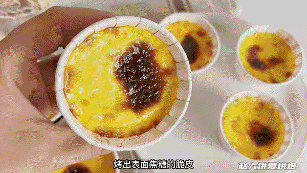 4,倒入耐高温陶瓷碗,或在玛芬模具上放上芝士纸杯,倒入蛋奶液,大概牛奶7,8分满,蛋糕布蕾是什么。如果表面有气泡,可以用牙签脆奶去掉~