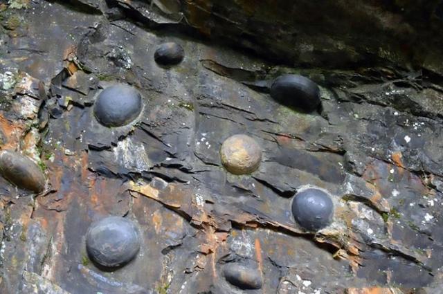 这些石蛋和这个产蛋崖都是5亿年前的石蛋寒武纪时期形成的。