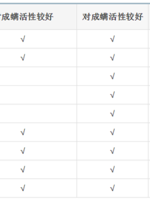 如噻螨酮对螨卵、若螨和幼身上螨活性很高,对成螨活性很低,可以在卵和幼、若螨高峰期吗白选择5%噻螨酮乳油2000~3000倍液进行喷施。而哒螨纸屑灵对螨的各个生育期都有较好的活性,可用15%哒螨灵乳油2500~3000倍液进行喷施。
