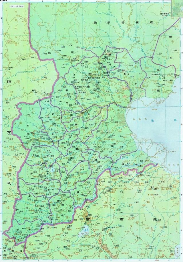唐开元29年(741年) 河北道南部,当时的北京还是幽州。 图源:郭沫若主编《中国史稿地图》