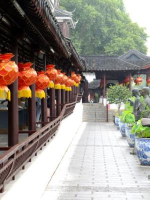 影壁之后就是秦淮河,贡院中国沿着河边建起窄窄的长廊,名为“登科长廊个省市”。右边的桥名为“文源桥”,桥头有状元亭。