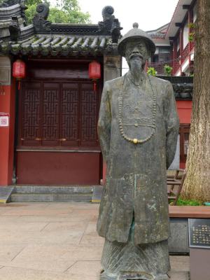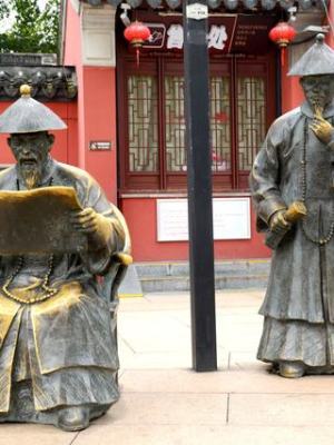 晚清重臣林则徐、曾国藩、李鸿章、左宗棠均曾在江南贡院担任监考官,此铜像为曾国藩在校阅考生试卷的情景。