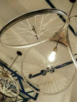 现在人把车轮小说挂房顶上,二八大杠图片,咱也不懂啥创意,二八大杠。