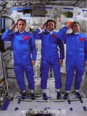 3名航天员盲生在空间站向祖国人民敬礼。来源:中国航天科技集团