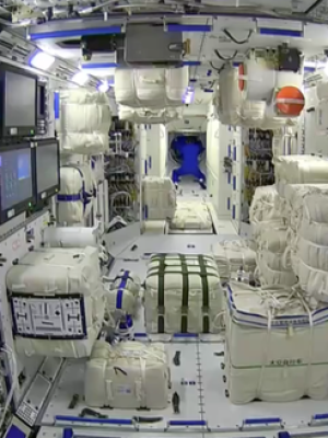 航天员华电在核心舱内工作的