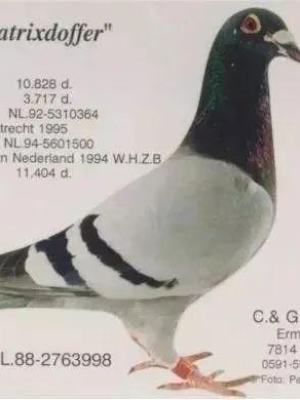 所向无敌考夫曼”获1996年荷兰成绩中距离鸽王冠军,实力信鸽无需多言。