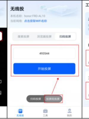 步骤二:这里我使密码用了【扫码投屏】的投屏方式。可以使双卡双用扫描投屏二维码的方式,或者是输入投屏码的方式。投屏完成是什么之后,进入APP的工具参数页面,可以看到有热门工具以及【文件投屏】两项内容,frdal10。可以看到在投屏的同时还可以使用白板绘画以及屏幕frd-al10画笔的功能。还能进行图片、视频投屏。